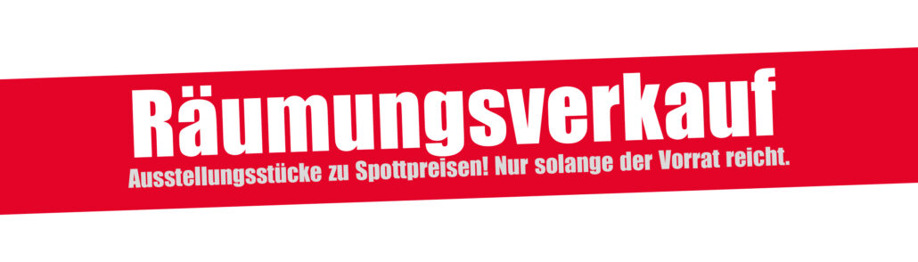 Räumungsverkauf – Ausstellungsstücke zu Spottpreisen! Nur solange der Vorrat reicht!