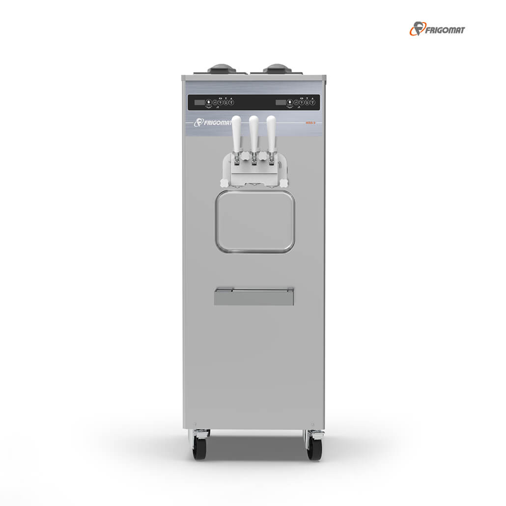 Die Frigomat Softeismaschine Kiss 3 Power P EMU Vertical ist eine leistungsstarke und zuverlässige Softeismaschine für 2 Sorten und 1 Mix. Dank ihrer kompakten Größe passt sie auch in kleinere Küchen oder Gasträume – das macht sie zur idealen Maschine für Eiscafés, Restaurants, Freibäder und viele andere Betriebe.