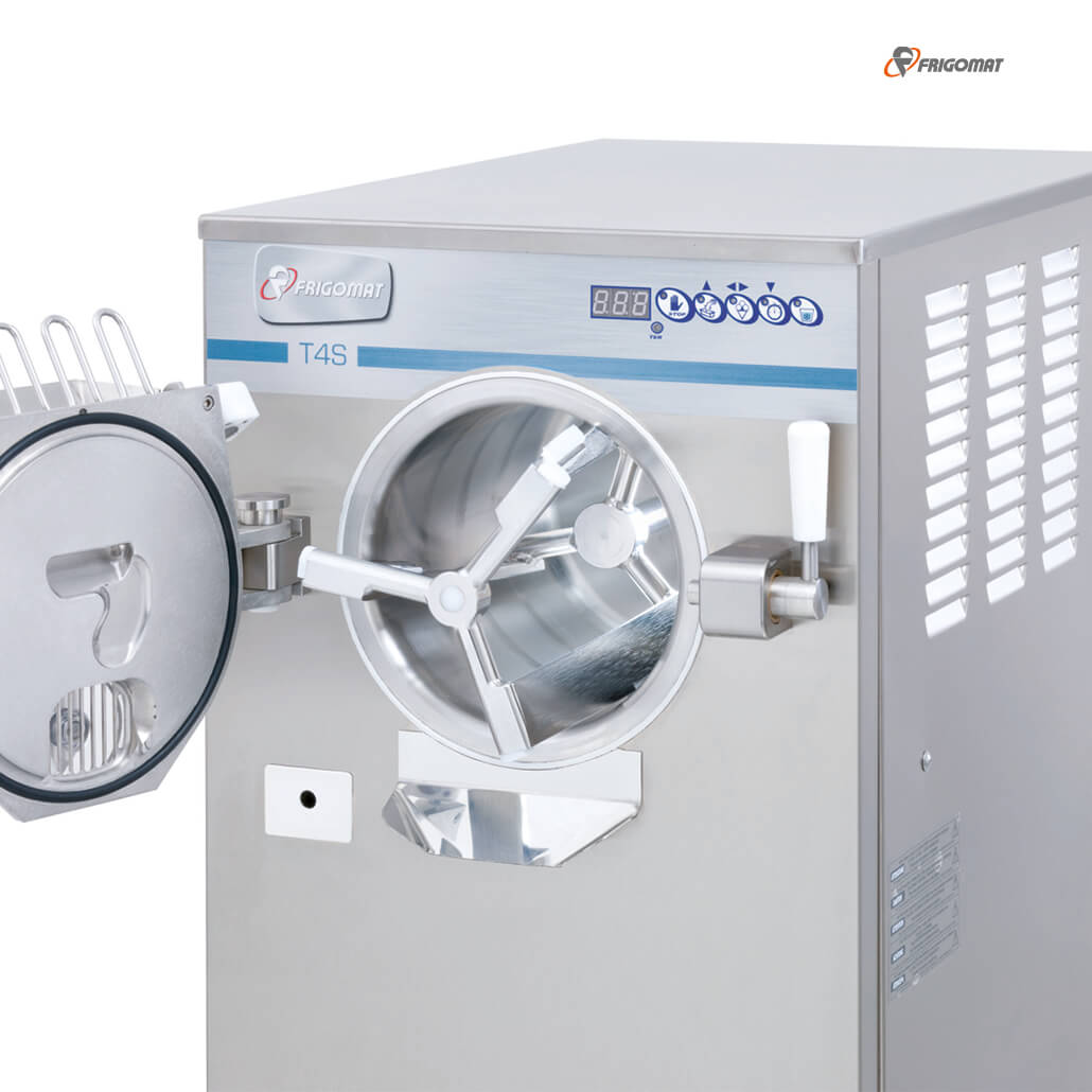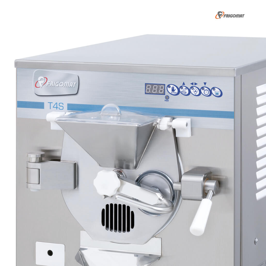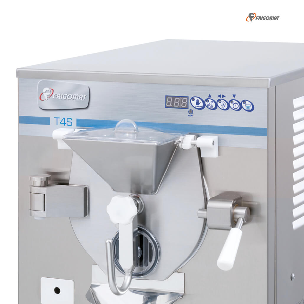 Die Frigomat Speiseeismaschine T4S mit Luftkühlung und Lichtstrom wurde entwickelt, um ganz einfach qualitativ hochwertiges Speiseeis herzustellen. Sie ist besonders zuverlässig und lässt sich mühelos warten. Diese Speiseeismaschine ist sowohl für Neueinsteiger als auch für traditionelle Eismacher perfekt geeignet.