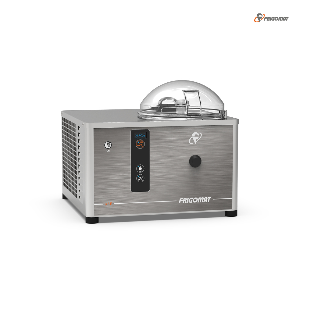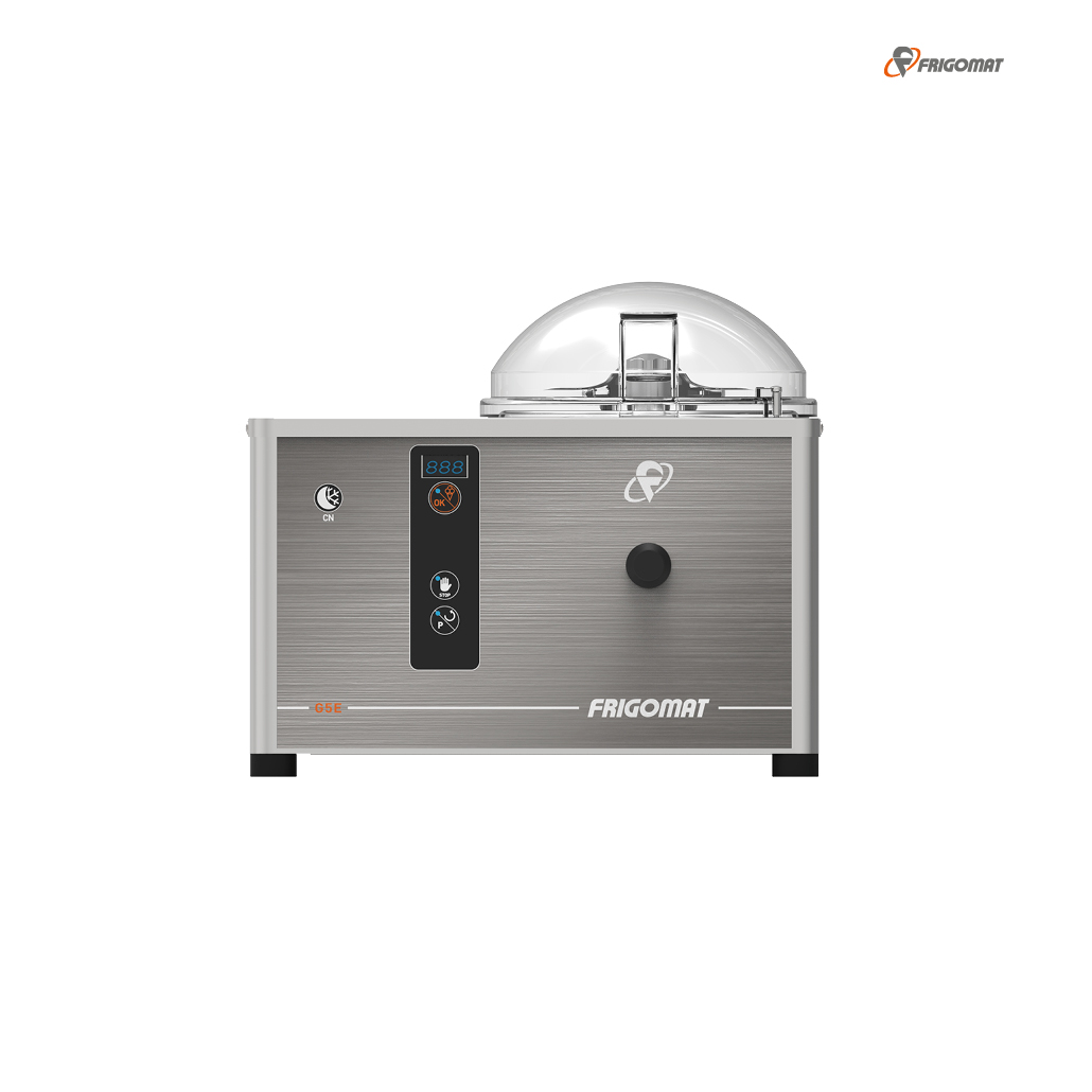 Die Frigomat Speiseeismaschine G5 ist eine hochwertige, aber dennoch platz- und energiesparende Speiseeismaschine, die auch im kleinen Café um die Ecke Platz findet. Die Arbeitszeiten des Gefrierzyklus lassen sich einstellen – auch die zyklische Rührfunktion ist möglich.