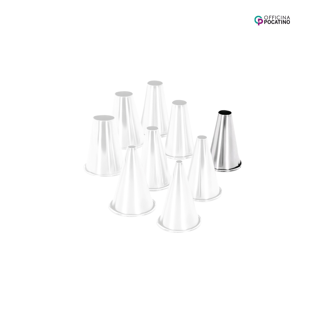 Der Pocatino Rohraufsatz hohl Ø 10 mm ist ein wichtiger Teil des Spritzbeutels und optimal für runde Spritzmuster geeignet. Er ist ideal zum Dekorieren von Kuchen, Gebäck und anderen Köstlichkeiten und macht es Ihnen leicht, schöne Muster und Designs zu kreieren.