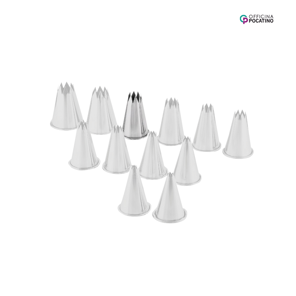 Der Pocatino Rohraufsatz hohl sternförmig Ø 14 mm ist ein wichtiger Teil des Spritzbeutels und optimal für blumen- und sternförmige Spritzmuster geeignet. Er ist ideal zum Dekorieren von Kuchen, Gebäck und anderen Köstlichkeiten und macht es Ihnen leicht, schöne Muster und Designs zu kreieren.