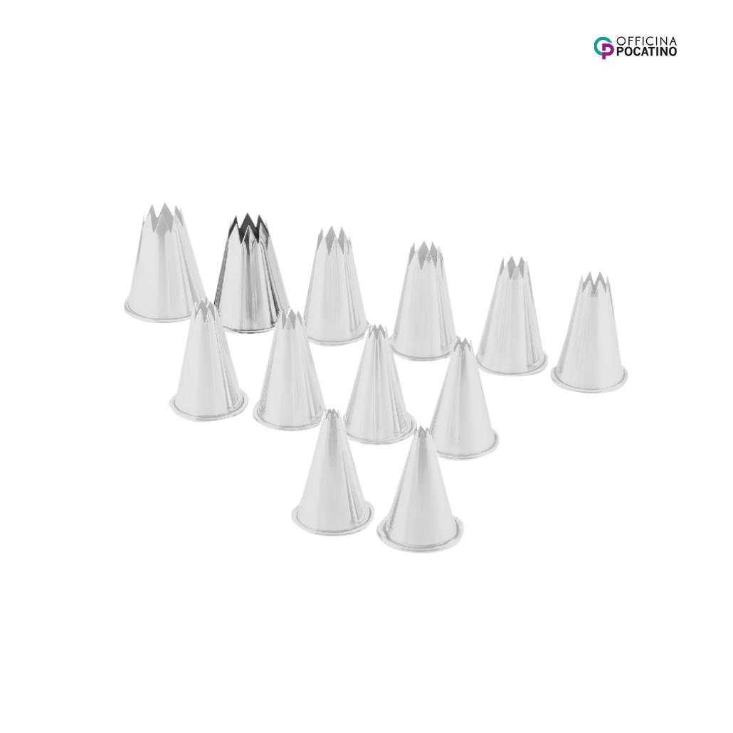 Der Pocatino Rohraufsatz hohl sternförmig Ø 16 mm ist ein wichtiger Teil des Spritzbeutels und optimal für blumen- und sternförmige Spritzmuster geeignet. Er ist ideal zum Dekorieren von Kuchen, Gebäck und anderen Köstlichkeiten und macht es Ihnen leicht, schöne Muster und Designs zu kreieren.
