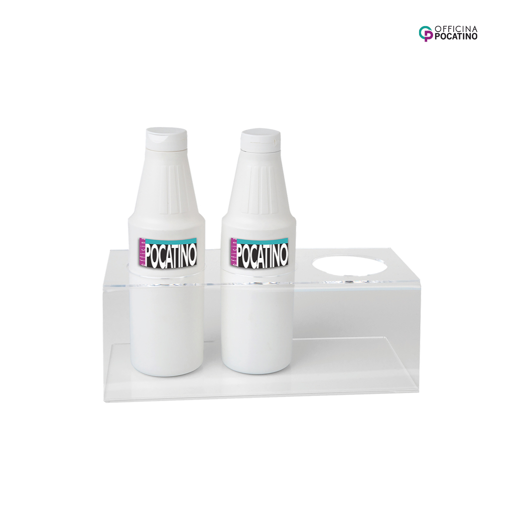 Der Pocatino Topping Flaschen Halter transparent ist ein klassisch geformter, leicht zu reinigender Flaschenhalter aus klarem Acryl, in dem Sie Flaschen in Standardgrößen aufbewahren können. Geeignet für 3 Flaschen.