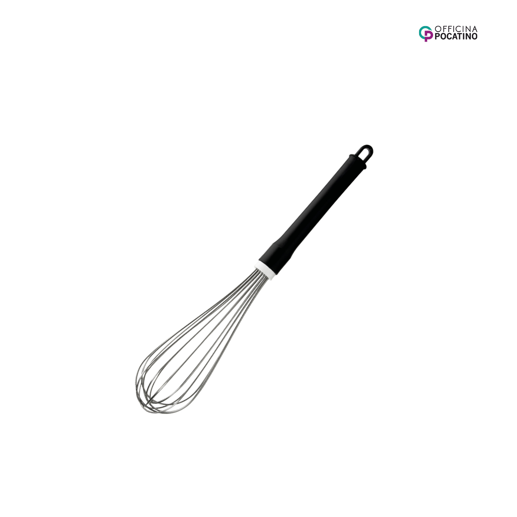 Der Pocatino Schneebesenl Ø 35 cm mit schwarzem Griff ist ein professioneller Schneebesen zum Rühren von dünnen und dicken Konsistenzen. Der Griff ist in stilvollem schwarz gehalten. Er ist aus hochwertigem Edelstahl gefertigt. Der Schneebesen ist ein wichtiges Zubehör zur Herstellung von Speiseeis.