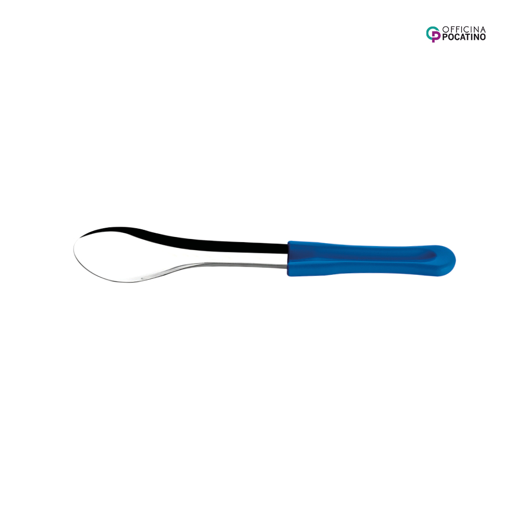 Die Pocatino Eisspachtel blau Ø 30 cm ist ein perfektes Werkzeug für die Speiseeisproduktion und eignet sich zum Umfüllen, Portionieren und Glätten. Die Klinge zum einfachen Greifen und Schaben der Eiscreme besteht aus rostfreiem Stahl. Der leicht nach innen gebogene Griff macht die Eisspachtel besonders handlich.