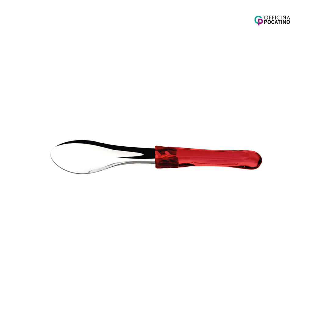 Die Pocatino Eisspachtel Kristall rot Ø 26 cm ist ein perfektes Werkzeug für die Speiseeisproduktion und eignet sich zum Umfüllen, Portionieren und Glätten. Die Klinge zum einfachen Greifen und Schaben der Eiscreme besteht aus rostfreiem Stahl. Der leicht nach innen gebogene Griff macht die Eisspachtel besonders handlich.